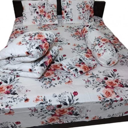 ৭/৮ ফিট কমফোর্টার একটি,বালিশের কভার২টি কোল বালিশের কভার ১টি ও বিছানার চাদর সহ ৫পিচের কম্বো সেট। বিঃ দ্রঃ যারা কম্বো সেট নিবেন তারা পাবেন।