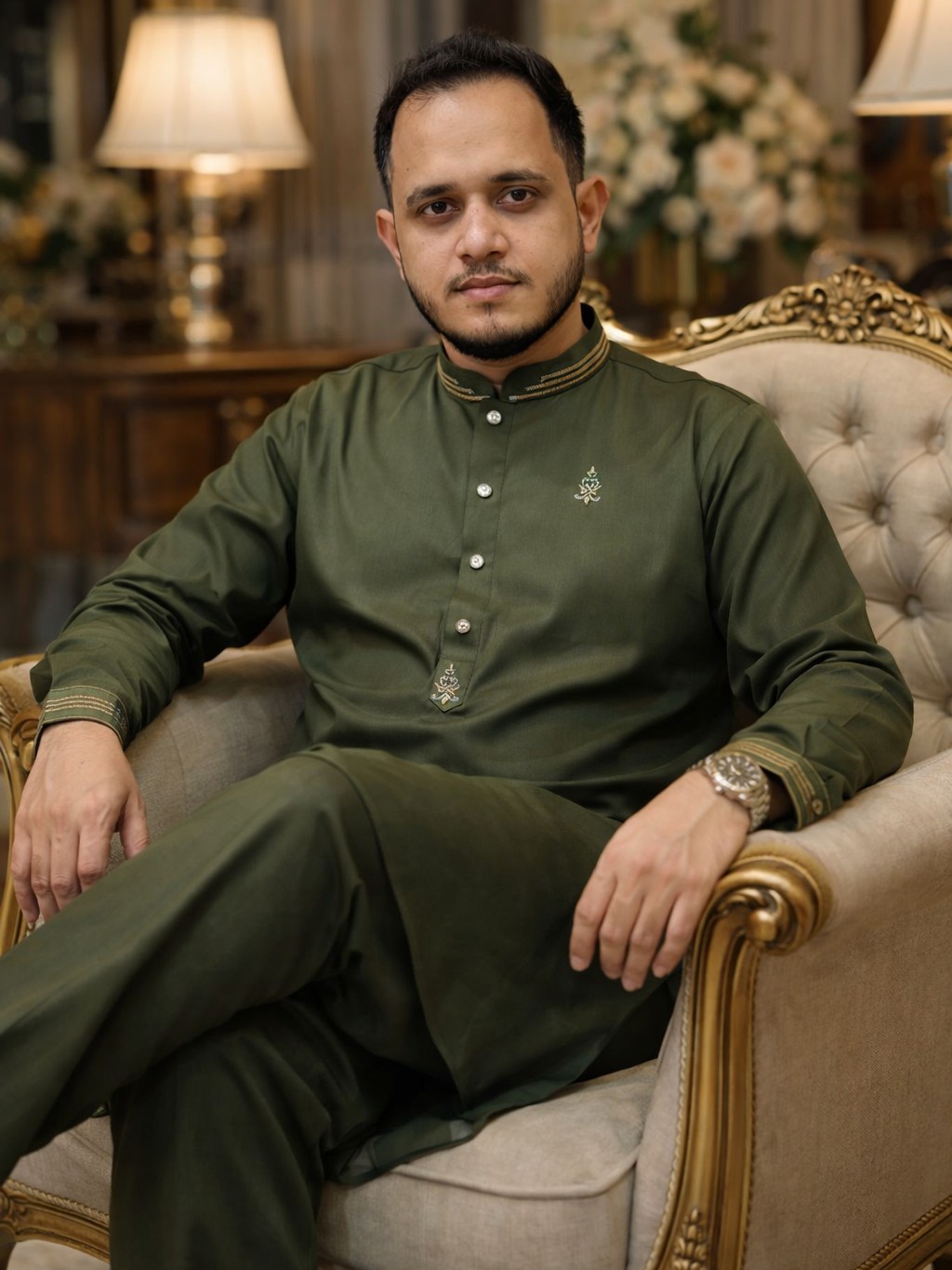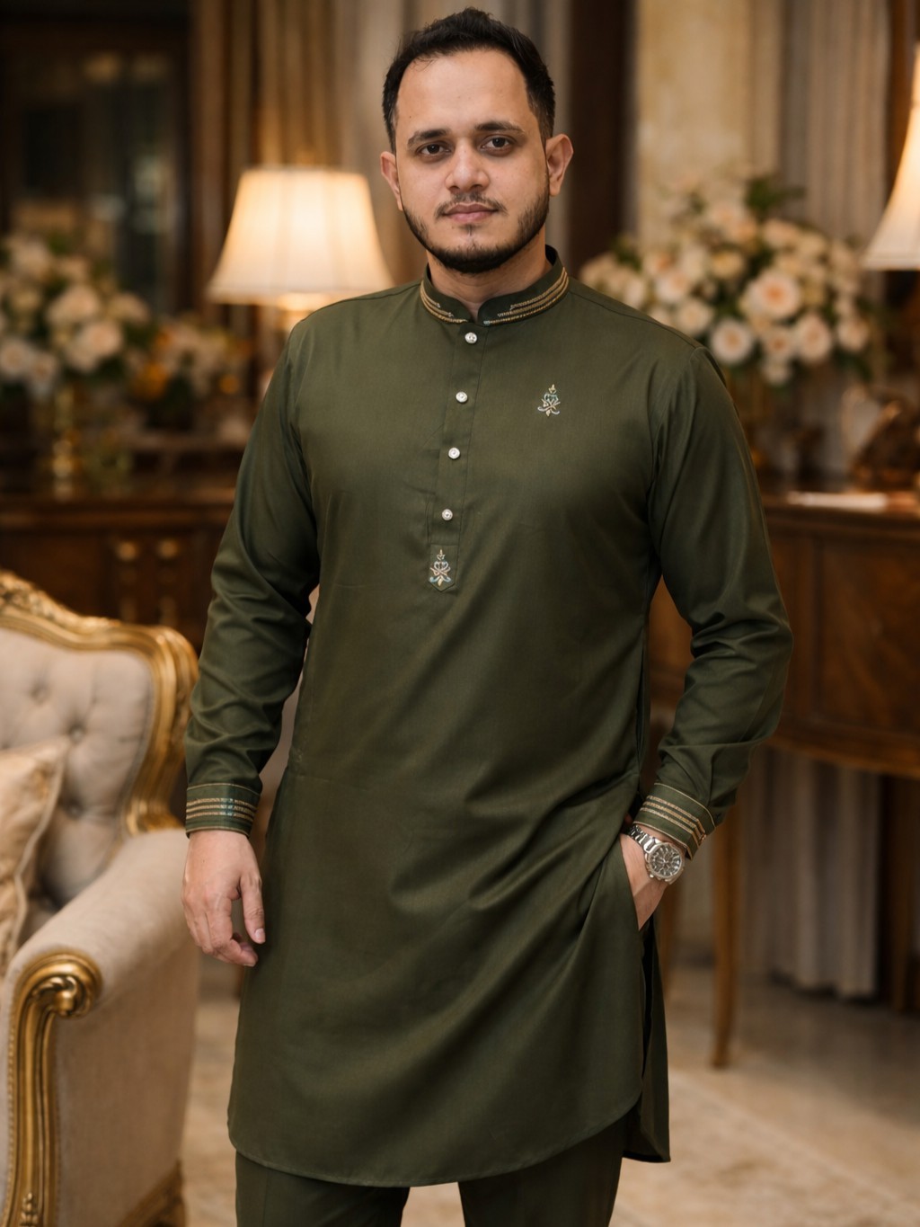 ঈদ প্রিমিয়াম লাক্সারি কাবলি সেট - Olive