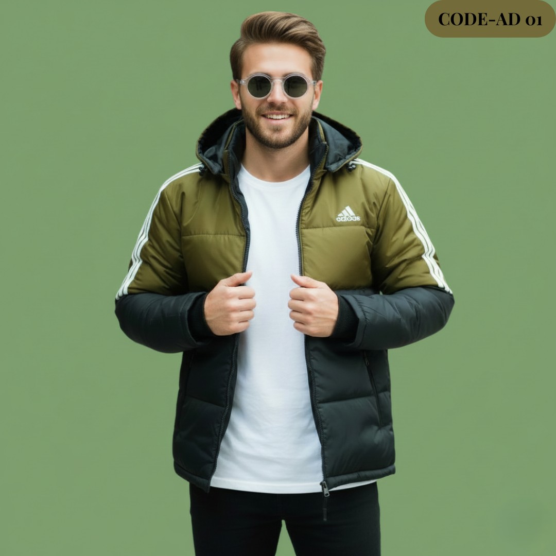 Men’s Insulated Zipper Hoodie Jackets Adidas(Olive/Black)-AD 01