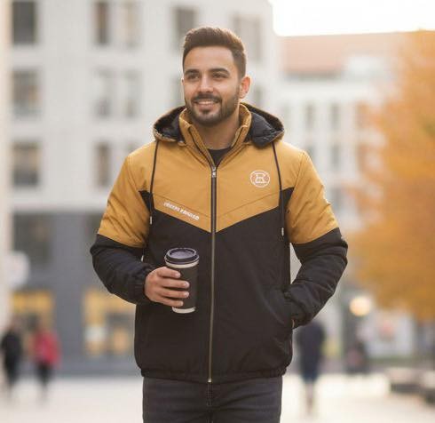 Men's New Premium HODIEE Jacket For winter 2025-26 ( BISCUIT &BLACK CONTRAST )